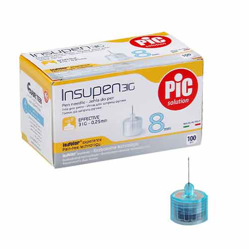 سرسوزن Pic سایز 8 میلی متری / گیج 31 بسته 100 عددی برای تزریق با قلم انسولین