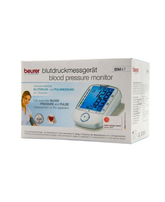 استفاده از دستگاههای فشار خون یکی از اقدامات لازم و موثر در ابتلا به این بیماری و حتی درمان این بیماری است. در دقیق بودن فشارسنج های عقربه ای شکی نیست، ولی برای اندازه گیری دقیق توسط فشارسنج آنالوگ نیاز به فردی دارید که در کنار شما بتواند به طور دقیق فشار خونتان را اندازه گیری کند. همچنین شما همیشه نمی توانید برای چک کردن فشار خونتان به مطب یا کلینیک مراجعه کنید. بخصوص زمانی که پزشک توصیه می کند فشار خون شما به طور منظم چک شود. همچنین بعضاً مشاهده می شود که شلوغی، سروصدا و استرس افراد در مطب، فشار خون صحیح را برای فرد به همراه ندارد. بهترین راهکار تهیه دستگاه فشارسنج دیجیتالی است. دستگاه فشار سنج دیجیتالی نیز دارای دو نوع بازویی و مچی است. کار با فشارسنج دیجیتالی معمولاً راحت بوده و نیاز به گوشی پزشکی جهت گرفتن فشار ندارد. فشار سنج دیجیتال کاملاً اتوماتیک است و با لمس یک دکمه، خود دستگاه به طور خودکار پمپ شده و سپس هوای درون آن تخلیه می شود. فشار سنج بیورر مدل BM47 دارای 4 عدد باتری قلمی و صفحه نمایش بزرگ است. سایز مناسب این دستگاه 22 تا 35 است. نمایشگر این محصول lcd است