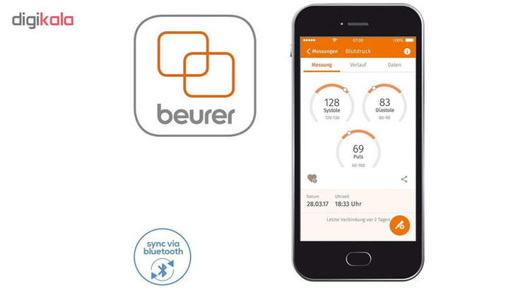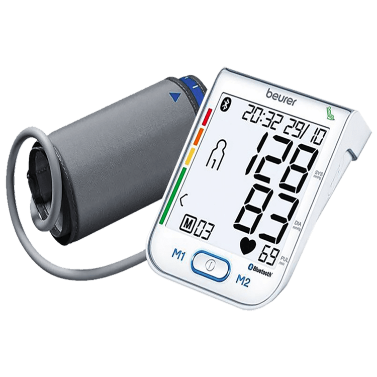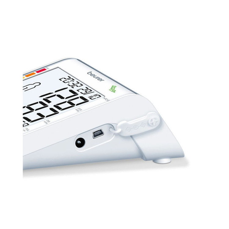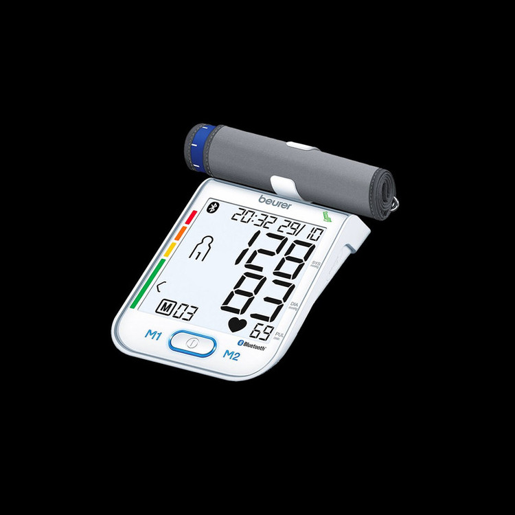 فشارسنج بازویی دیجیتال Beurer مدل BM77 ، با قابلیت مانیتورینگ دادهها است. این دستگاه فشارسنج مجهز به صفحه نمایش دیجیتالی لمسی است. عملکرد این محصول کاملاً خودکار است و برای خاموش شدن سریع و صرفهجویی در مصرف انرژی به سنسور خاموشی خودکار تجهیز شده است. فشارسنج بیورر قابلیت تشخیص آریتمی، فشارخون دیاستولی و سیستولی و ریسک حمله قلبی را دارد. این فشارسنج مجهز به کاف بزرگ فاقد ترکیبات لاتکسی است. این فشارسنج سبک و قابل حمل است و برای نگهداری آسان به کیف حمل تجهیز شده است. کاربری این محصول برند بیورر آسان است و پیچیدگی فشارسنج عقربهای و جیوهای را ندارد. نمایشگر این فشارسنج قادر به نمایش فشارخون، ضربان قلب، ساعت و تاریخ و وضعیت باتری است. این محصول به سیستم هشدار تعویض باتری تجهیز شده است و قابلیت تشخیص خطا در محاسبه نیز دارد. فشارسنج بیورر قابلیت محاسبه میانگین چند تست اخیر را دارد و برای مراقبت از بیماران سالمند و بستری در منزل مناسب است. این دستگاه فشارسنج Beurer قابلیت تعویض کاف دارد و مناسب سنجش فشارخون افراد با دور بازو بین 24 تا 40 سانتیمتر است. این محصول فشارسنج قابلیت اتصال به کامپیوتر از طریق پورت USB را دارد. همچنین میتواند از طریق بلوتوث به نرم افزار آنالیز دادهها متصل شود. این محصول به حافظه داخلی تجهیز شده و میتواند 60 گزارش فشارخون سیستولی، دیاستولی و ضربان قلب را برای هر کاربر ذخیره کند.