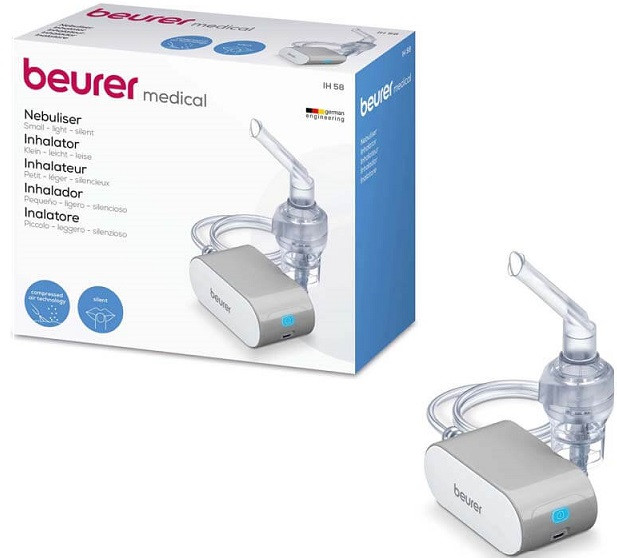 دستگاه نبولایزر بیورر مدل IH58، نوعی دستگاه تنفسی است که در کمک به رساندن مستقیم دارو به بخشهای گوناگون دستگاه تنفسی از راه استنشاق دارو کاربرد دارد و میتواند در پیشگیری و درمان سریعتر بیماری های دستگاه تنفسی فوقانی و تحتانی مفید باشد. این فرآورده کمک میکند تا هوای تنفسی بیمار مرطوب نگه داشته شود و مناسب بزرگسالان و کودکان طراحی شده و قابل استفاده در خانه است.