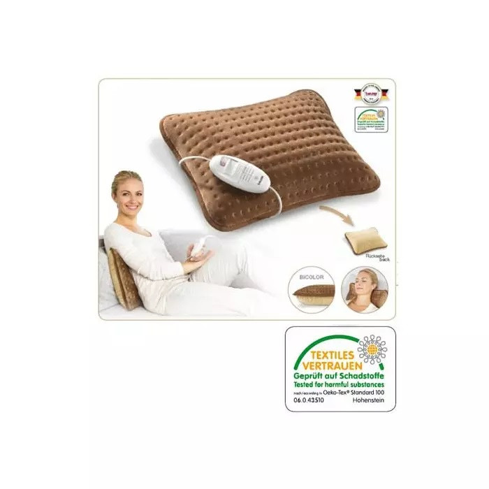 محصولی جدید از سری راه حلهای گرمایشی الکتریکی بیورر آلمان به صورت کوسن با رویه نرم و لطیف، دوستدار پوست و با عبور خوب هوا برای جلوگیری از تعریق. از این کوسن میتوان به روشهای گوناگون هنگام استراحت و یا خواب برای مقاصد ماساژ، درمان، التیام دردهای عضلانی، بازتوانی، ریلکسیشن و ... در نواحی مختلف بدن استفاده نمود.