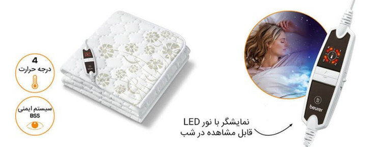 تشک برقی بیورر UB60، در ابعاد استاندارد با تنظیمات دمایی پیشرفته ای طراحی شده است.UB60،در ابعاد ۱۵۰ در ۸۰ سانتی متر از پشم گوسفند با کیفیت بالا ساخته شده است. سطح تشک بسیار نرم است و هیچگونه حساسیت و یاآلرژی برای پوست کاربران ایجاد نمی کند. حرارت در سطح تشک برقی با استفاده از المان های ظریف حرارتی که در سرتاسر تشک قرار گرفته اند تامین می شود. برای تنظیم درجه حرارت تشک یک سوئیچ کنترل مخصوص با نور LED در نظر گرفته شده است. کاربر می تواند با استفاده از سوئیچ کنترل، دما را در ۴ سطح مختلف تنظیم کند. سیستم تشک برقی به گونه ای طراحی شده است که هر ۳ ساعت یک بار به صورت خودکار دما را یک درجه کاهش میدهد. همچنین تشک پس از ۱۲ ساعت استفاده مداوم به صورت خودکار خاموشی می شود تا از خطرات احتمالی جلوگیری کند. از دیگر ویژگی های تشک برقی بیورر UB60، می توان به سیستم ایمنی BSS، روکش قابل شستشو، سوئیچ قابل جابجایی و ۲۴ ماه گارانتی معتبر شرکتی اشاره کرد.
