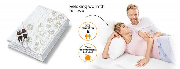 تشک برقی بیورر UB68XXL، انتخابی مناسب برای استفاده دو کاربر به صورت همزمان با ابعاد ۱۵۰ در ۱۶۰ سانتی متر است.اگر دارای درد مزمن در گردن،کمر و پاها هستید با گرما درمانی بدن خود را اتیام دهید و خواب راحت را تجربه کنید.این محصول علاوه بر بزرگی از لحاظ سایز دارای دو سوئیچ تنظیم دما است که به کاربران این امکان را میدهد حرارت هر قسمت از سطح تشک را به دلخواه خودشان برای هر نفر تنظیم کنند.