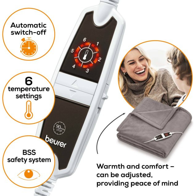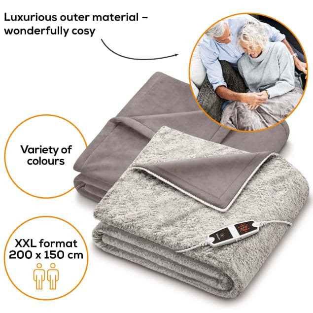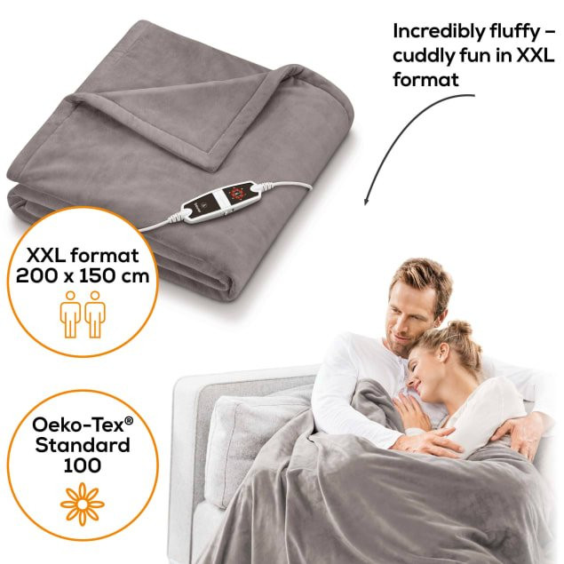استفاده از پتوهای برقی ها جهت گرم کردن بدن در روز های سرد زمستانی،و برای رفع خستگی و همچنین برای گذراندن دوره نقاهت و درمان بسیار مرسوم است. پتو برقی گرمایشی درمانی بیورر مدل HD 150XXL یکی از پتو های مطمئن و دارای سوئیچ الکتریکی دما است که توسط برند آلمانی beurer توسعه داده شده است. برندی که سال ها در زمینه تولید محصولات گرمازا تجربه دارد بنابراین میتوان از کیفیت بالا، کاربردی بودن، ایمنی و کاربر پسند بودن آن اطمینان حاصل کرد.ابعاد این پتو 200 در 150 سانتی متر است و به خاطر سایز بزرگش برای استفاده های دو نفره بسیار مناسب است. از لحاظ ظاهری تک رنگ و کاملا ساده طراحی شده است که با سلیقه افراد بیشتری سازگار باشد. علاوه بر این جنس رویه آن بسیار نرم بوده و حس خوبی را به مصرف کننده منتقل میکند. پارچه انتخاب شده برای این محصول تنفس خوبی با سطح بدن دارد که مانع عرق کردن استفاده کننده میشود.بیورر آلمان سعی داشته تا محصولی پایدار و ایمن تولید کند و پتو برقی بیورر HD150، در 6 درجه دمایی قابل تنظیم است و حداکثر توان مصرفی اش 150 وات است. البته باید توجه داشت که این پتو طبق استانداردهای سازمان بهداشت جهانی WHO در بیشترین درجه گرما 6 درجه از حداکثر دمای ممکن بدن بالاتر میرود. یعنی چیزی در حدود 49 درجه سانتی گراد.