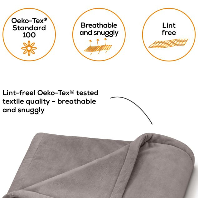 انجمن Oeko-Tex، یک انجمن بین المللی است که وظیفه آزمایش و تشخیص مواد زیان آور بر روی انسان ها را دارد. این انجمن براساس تحقیقات و آزمایش های خود معیار هایی واضح برای تولید محصولات بی زیان برای انسان ایجاد کرده که بیورر در انتخاب مواد اولیه برای ساخت پتو برقی بزرگ برند بیورر مدل beurer HD 150 heated overblanket توجه ویژه ای به این استاندارد ها داشته وتوانسته محصولی بی ضرر تولید کند و گواهینامه Oeko-Tex 100 را از انجمن بین المللی Oeko-Tex کسب کند.