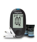 دستگاه تست قند خون emperor مدل prodigy تنها با 0.5 میکرولیتر خون، توانایی سنجش قند خون شما را در حدود 5 ثانیه دارد. شما میتوانید تا 250 نتیجه تست خود را با ذکر تاریخ و ساعت در این دستگاه ذخیره کنید. دستگاه تست قند خون امپرور Autocode می باشد، یعنی برای استفاده از بسته جدید نوار قند نیاز به کد جدید نمی باشد. این مدل ابعاد کوچکی دارد و با یک باطری سکه ای کار می کند و با توجه به سبک بوده به راحتی در جیب و یا کیف شما جا گرفته و به راحتی می توانید آن را با خود حمل نمایید.